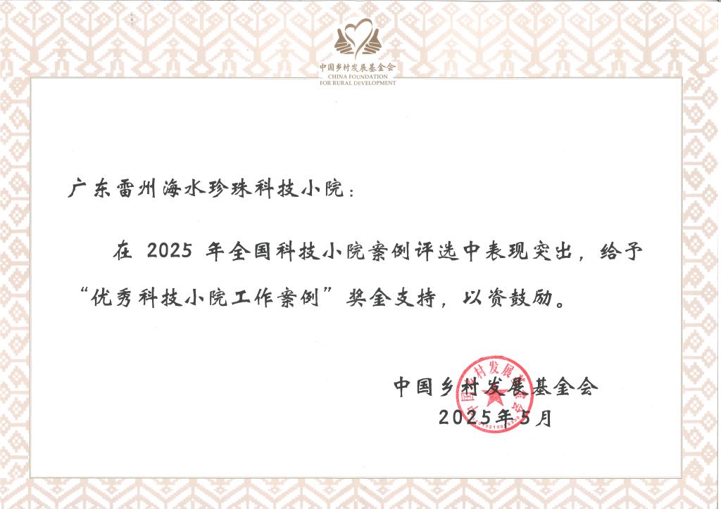 赋能乡村产业振兴,深化校企协同育人模式创新。广东雷州海水珍珠科技小院凭借在人才培养、科技服务、产业赋能等方面的卓越表现,成功进入首批教育部科技小院质量监测体系,并再次入选全国科技小院优秀典型案例。我校科技小院形成了“教育部-中国农技协-校级”三梯度科技小院,聚焦涉海特色,推动科研成果转化落地,实现了“科研服务产业、产业反哺育人”良性循环。