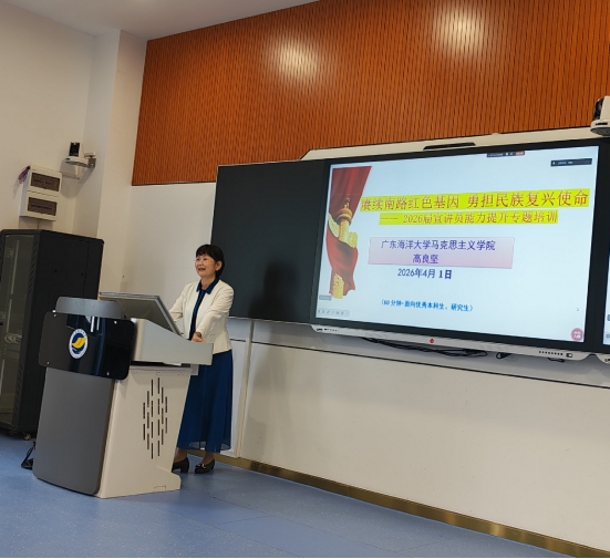 马克思主义学院高良坚教授以《赓续南路红色基因,勇担民族复兴使命》为题作专题培训。高教授从理论高度为宣讲团成员深入解读了南路革命的历史背景、发展历程和时代价值。围绕青年宣讲的政治站位与时代使命、南路革命的主要内容和精神内核、青年宣讲的表达技巧与实战方法三个维度展开系统讲授。高教授结合马克思主义理论视角,系统阐述了南路革命在广东革命史上的重要地位,帮助宣讲团成员进一步深化对革命历史的理解,增强理论武装,确保宣讲内容的准确性和思想性,为讲好南路革命故事奠定了坚实的理论基础。